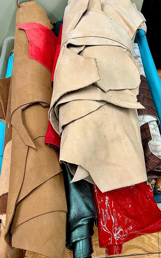 LEATHER 1/2 SKINS (ASSORTED SIZED, COLOR, PRINTS, TEXTURE)
